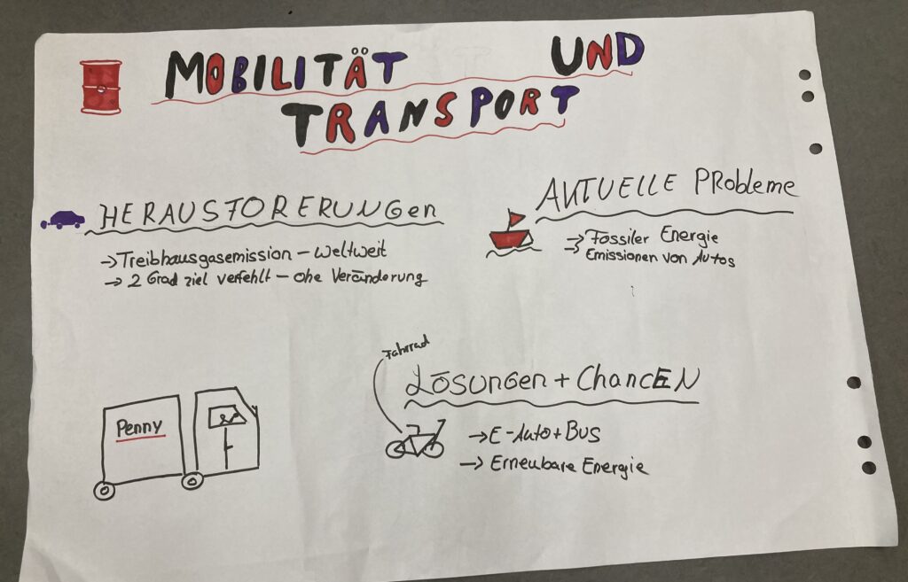 Vorab wurden die Schülerinnen in verschiedene Gruppen eingeteilt, deren Interessen sie an der Konferenz vertreten sollten zum Beispiel Klimaaktivisten, Mobilität & Transport, Land- und Forstwirtschaft. Nachdem die Schülerinnen durch eine PowerPoint Präsentation in Klimawandel und Veränderungen eingeführt waren, sollten sie in ihren Gruppen ein Plakat gestalten, welches die Interessen und Sorgen ihrer Interessensgruppe abbildet und dieses präsentieren. Dazu wurden auch Materialien zur Verfügung gestellt. Für die Schülerinnen war es nicht ganz einfach, sich in die Interessensgruppen zu versetzen und die eingeführte Software En-Roads zu verwenden.